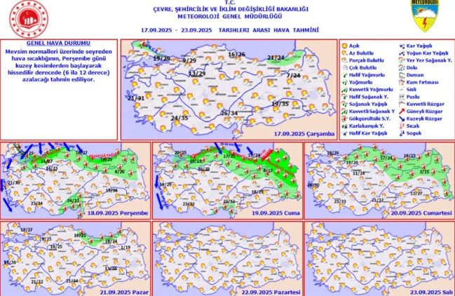 Hava sıcaklıklarının cumartesi gününden itibaren yeniden eylül ayı ortalamalarına dönmesi bekleniyor.